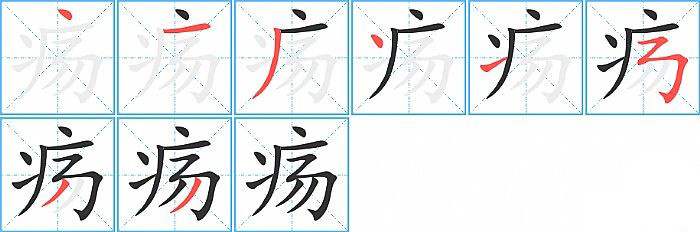 - 问:写"疡"字第7笔是什么笔画?答:撇【