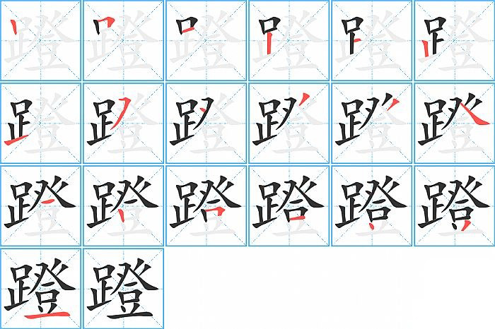 - 问:写"蹬"字第16笔是什么笔画?答:横【