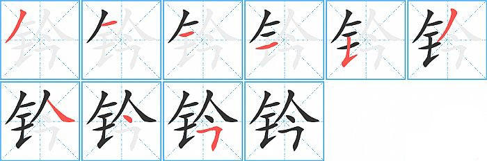 - 问:写"钤"字第9笔是什么笔画?答:横撇【