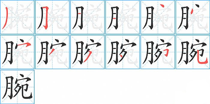 - 问:写"腕"字第12笔是什么笔画?答:竖弯钩【
