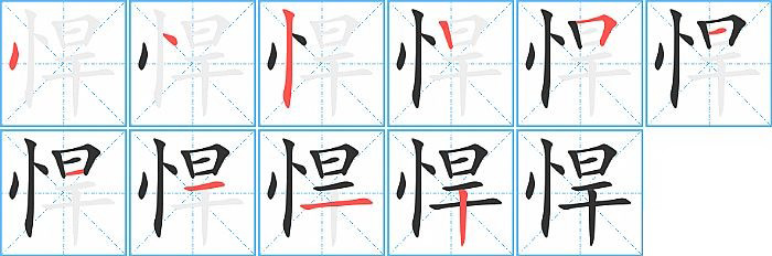 - 问:写"悍"字第10笔是什么笔画?答:竖【