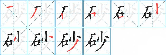 - 问:写"砂"字第5笔是什么笔画?答:横【