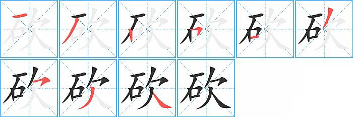 - 问:写"砍"字第8笔是什么笔画?答:撇【