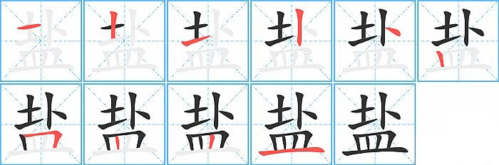 - 问:写"盐"字第10笔是什么笔画?答:横【