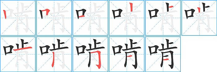 - 问:写"啃"字第10笔是什么笔画?答:横【