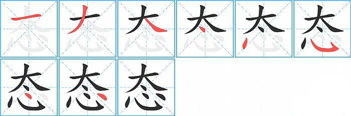 - 问:写"态"字第6笔是什么笔画?答:斜钩【