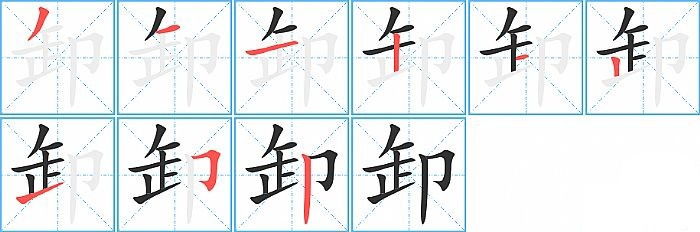 - 问:写"卸"字第8笔是什么笔画?答:横折钩【
