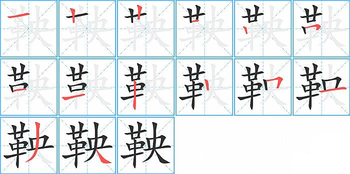 - 问:写"鞅"字第13笔是什么笔画?答:撇【