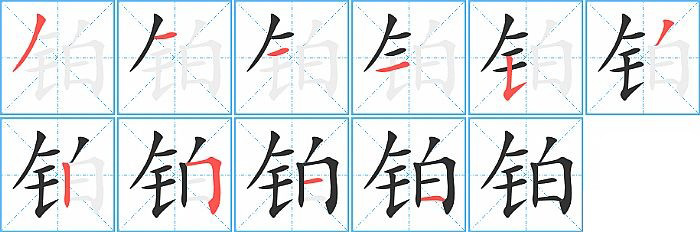 - 问:写"铂"字第9笔是什么笔画?答:横【