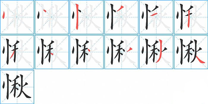 - 问:写"愀"字第12笔是什么笔画?答:捺【