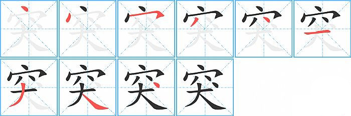 - 问:写"突"字第6笔是什么笔画?答:横【