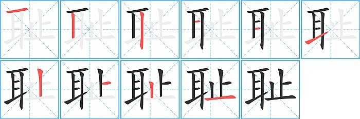 - 问:写"耻"字第10笔是什么笔画?答:横【