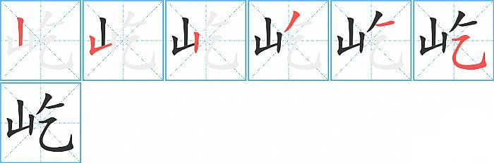 - 问:写"屹"字第5笔是什么笔画?答:横【