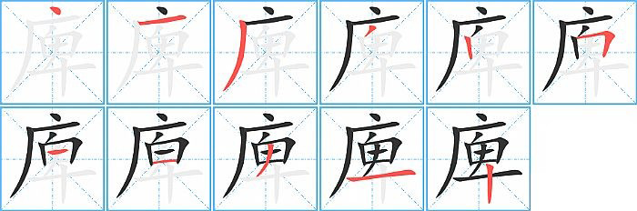 - 问:写"庳"字第10笔是什么笔画?答:横【