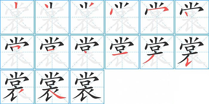 - 问:写"裳"字第13笔是什么笔画?答:撇【