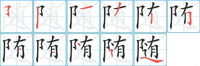 - 问:写"随"字第10笔是什么笔画?答:横折折撇【