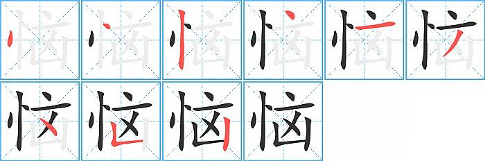 - 问:写"恼"字第8笔是什么笔画?答:竖折【