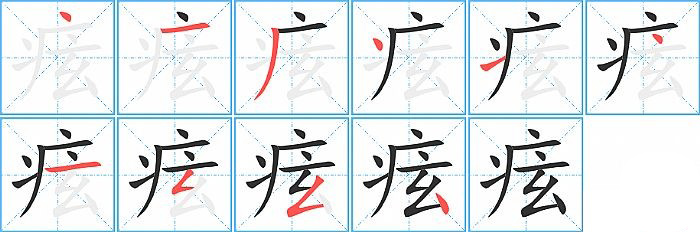 - 问:写"痃"字第9笔是什么笔画?答:撇折【
