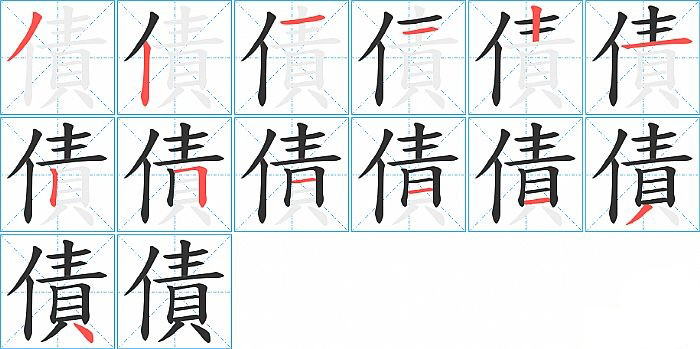 - 问:写"債"字第12笔是什么笔画?答:撇【