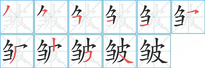- 问:写"皱"字第10笔是什么笔画?答:捺【