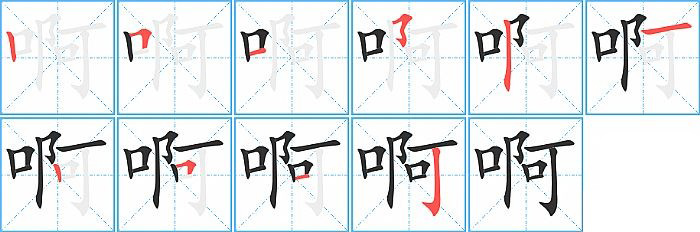 - 问:写"啊"字第10笔是什么笔画?答:竖钩【