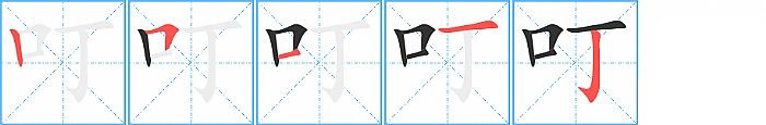叮的笔画为5画, 笔顺为