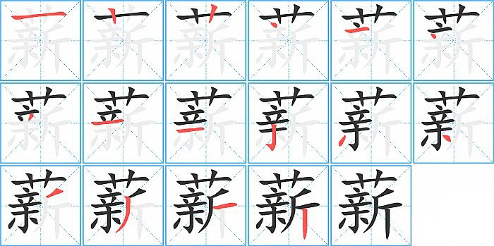 - 问:写"薪"字第14笔是什么笔画?答:撇【