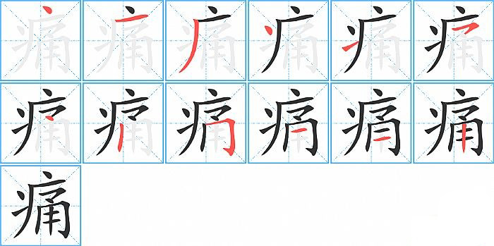 - 问:写"痛"字第12笔是什么笔画?答:竖【
