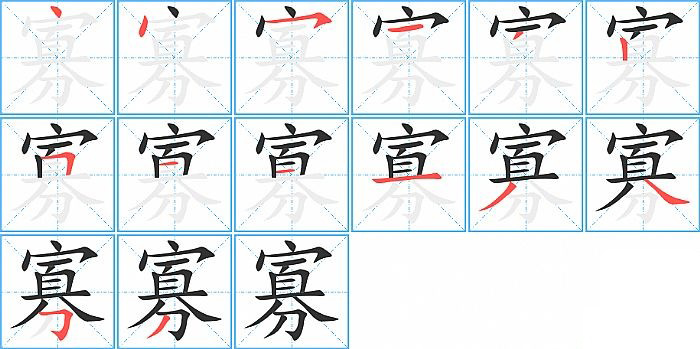 - 问:写"寡"字第12笔是什么笔画?答:捺【