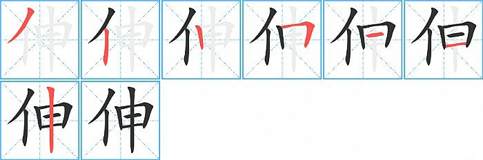 伸的笔画为7画, 笔顺为