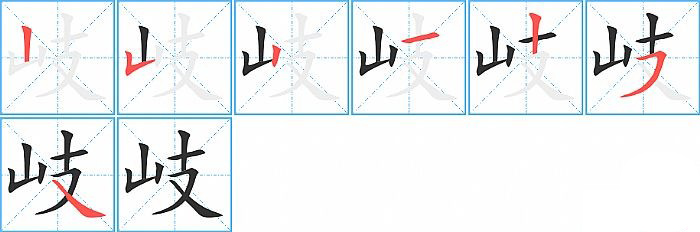 - 问:写"岐"字第7笔是什么笔画?答:捺【