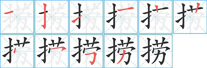 - 问:写"捞"字第10笔是什么笔画?答:撇【