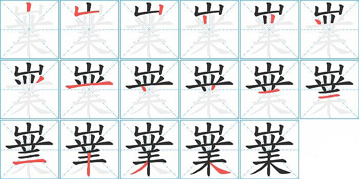 - 问:写"嶪"字第15笔是什么笔画?答:撇【