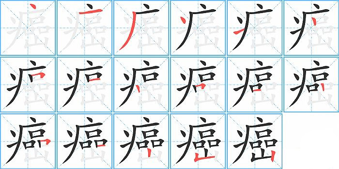 - 问:写"癌"字第14笔是什么笔画?答:横【