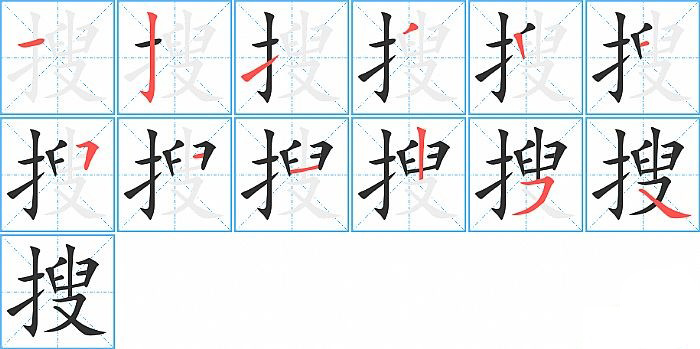 - 问:写"搜"字第12笔是什么笔画?答:捺【