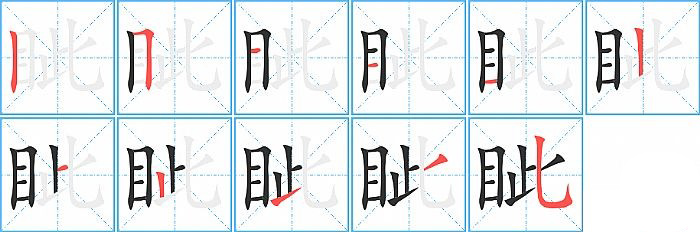 - 问:写"眦"字第1笔是什么笔画?答:竖【