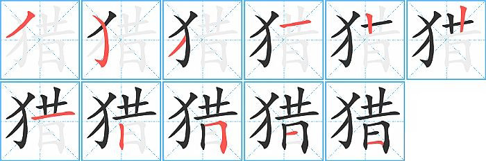 - 问:写"猎"字第10笔是什么笔画?答:横【