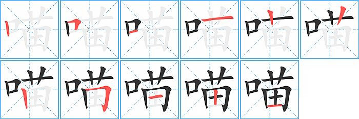 - 问:写"喵"字第9笔是什么笔画?答:横【