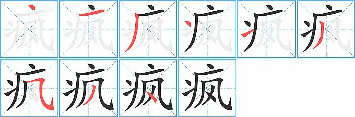 - 问:写"疯"字第8笔是什么笔画?答:撇【