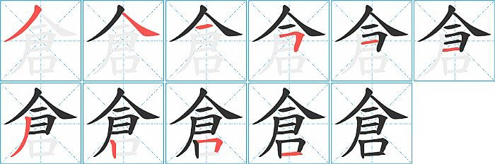 - 问:写"倉"字第10笔是什么笔画?答:横【