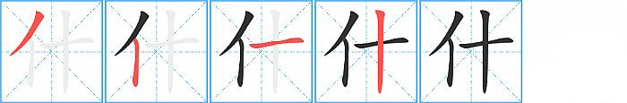 1. 十(多用于分数或倍数):什百(十倍和百)。什一(十分之一)。什袭珍藏(形容极其珍重地收藏物品)。