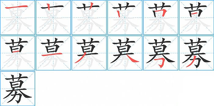 - 问:写"募"字第12笔是什么笔画?答:撇【