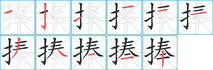 - 问:写"捧"字第10笔是什么笔画?答:横【
