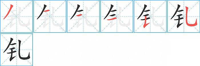 - 问:写"钆"字第6笔是什么笔画?答:竖弯钩【