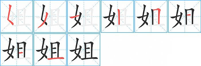 - 问:写"姐"字第8笔是什么笔画?答:横【