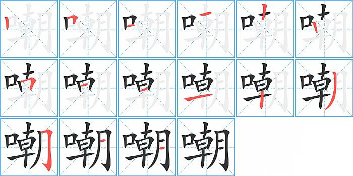 - 问:写"嘲"字第12笔是什么笔画?答:撇【