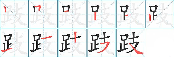 - 问:写"跂"字第11笔是什么笔画?答:捺【