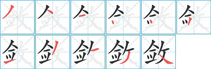 - 问:写"敛"字第10笔是什么笔画?答:撇【