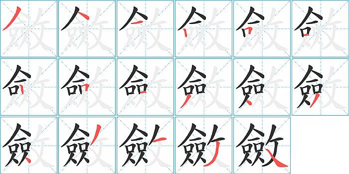 - 问:写"斂"字第13笔是什么笔画?答:点【