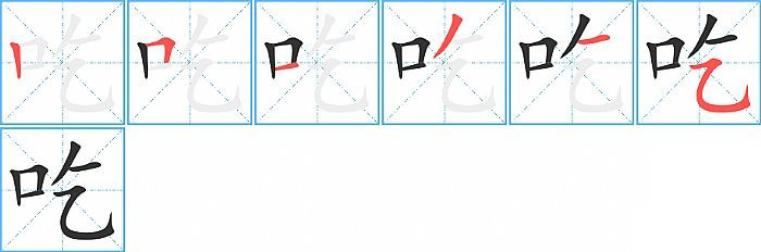 - 问:写"吃"字第5笔是什么笔画?答:横【